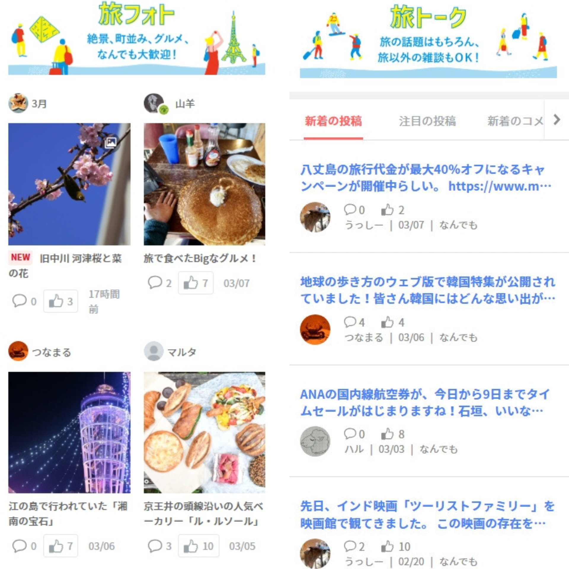 みなさんに安心してご利用いただくために、会員登録をしてログインしないと、「旅トーク」や「旅フォト」といったコンテンツを見られないような設定にしています。